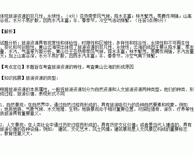 说出黄山云海突出体现的旅游资源特性,并分析黄山云海的成因。