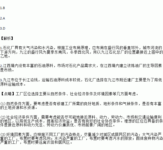 3.该厂选择在九江市附近建厂主要是为了