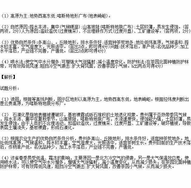 (3)近年福建等茶产业大省种植面积逐渐萎缩,贵州己成为我国茶园面积第一大省。分析贵州发展茶叶种植的优势自然条件((4分),指出目前贵州茶产业存在的问题。4分)