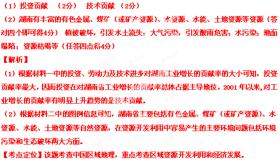 (1)从材料一中可知:1978—1997年的20年间,对湖南省工业增长的贡献率总体占据