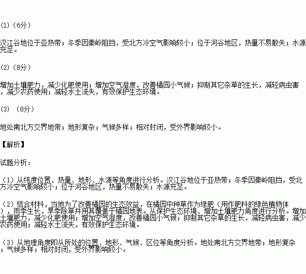 (1)简析汉江谷地适宜柑橘生长的原因。(6分)