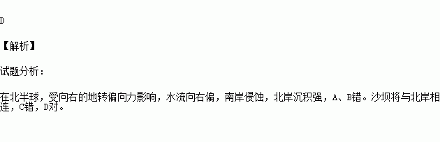 C.沙坝将与南岸相连 D.沙坝将与北岸相连