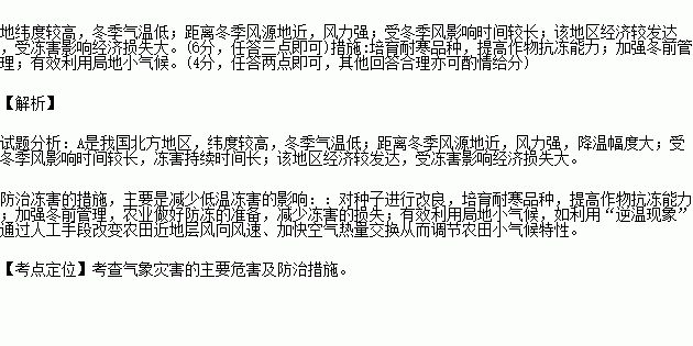分析A地成为我国冻害高发区之一的原因,并为该地提出防治冻害的措施。