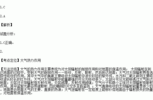 1.该日昼夜温差最小的城市,右图中能反映其产生原因的是( )