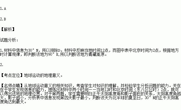 下图示意我国30°N某地正午时房屋内的光照情况,表一数据为正午时阳光照射在室内地面上的面积统计(图中时间为北京时间)。回答下列各题。