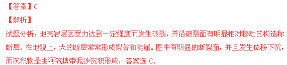 图3是“某地区地质构造剖面及地面景观示意图”,关于图中河谷地区地形的成因,下列叙述正确的是( )