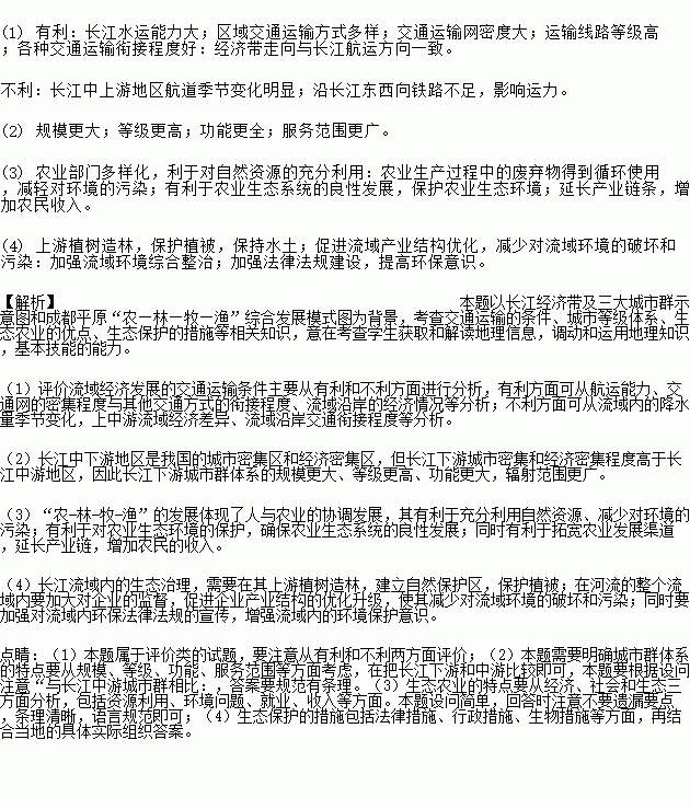 (3) 成都平原农业的“农—林—牧—渔”综合发展模式优点有哪些?