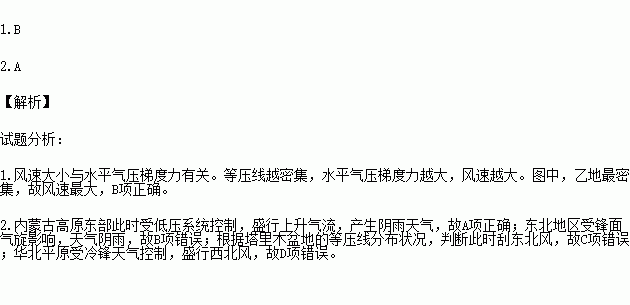 1.甲、乙、丙、丁四地中风速最大的是( )