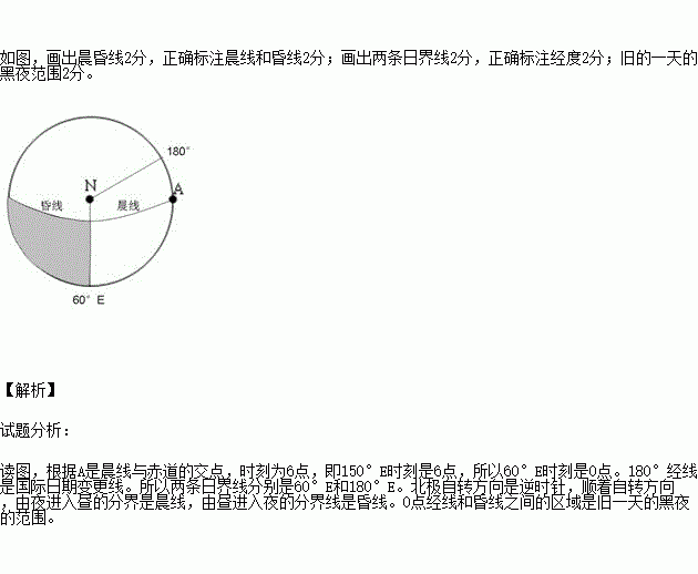 (3)处在旧的一天的黑夜范围(用阴影表示)。(10分)
