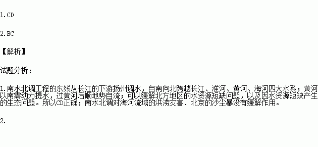 1.关于南水北调东线工程的叙述,正确的是( )