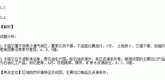 2.ÒÀ¾Ý¿¨Ëþ¶ûµÄ×ÊÔ´Ìõ¼þ£¬ÍƲâ¸Ã¹úµÄÖ÷Òª³ö¿Ú²úƷΪ( )