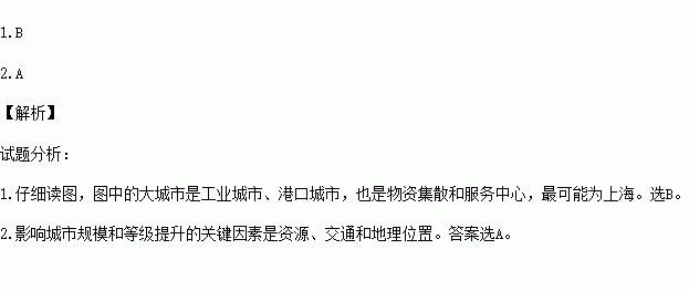 1.与图中大城市的形成条件最相似的城市是