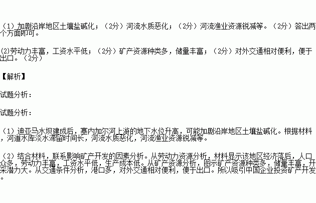 (1)迪亚马水坝建成后,给塞内加尔河上游的环境带来了哪些不利影响?(4分)