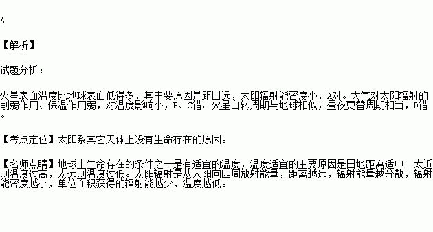 火星表面温度比地球表面低得多,其主要原因是