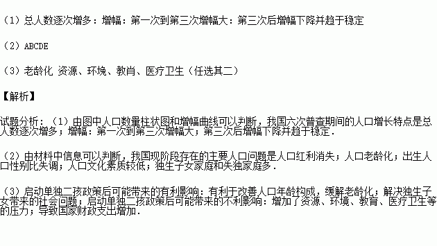 (2)根据材料数据,我国现阶段存在的主要人口问题有________________(多选)