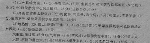 (3)说出西藏自治区两种重要能源的名称,并选择其一说明主要成因。(6分)