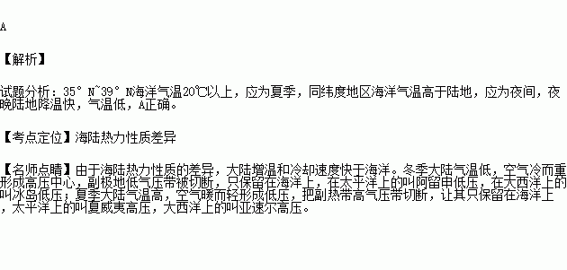 A.8月 22时 B.8月 13时 C.1月 22时 D.1月 13时