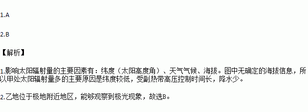 ③距海远,降水少 ④海拔高,大气稀薄,太阳辐射损耗少