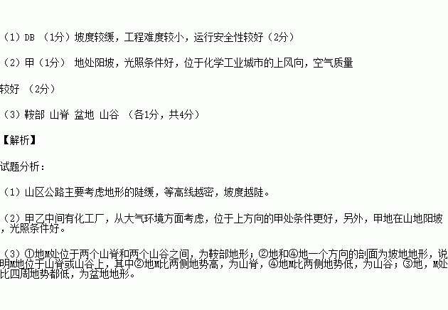 (1)在B山设计了CB、DB两条上山公路线。根据等高线图判断,沿 线修建公路合理,理由是 。(3分)