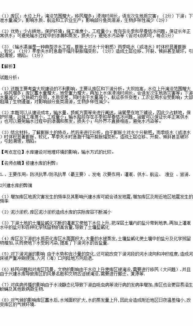 £¨3£©¼òÊöÅòÕÍÍÁ¶ÔÊäË®ÇþµÀµÄÓ°Ïì¡£