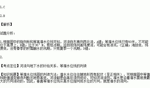 下图为“我国东部地区某河流两侧的潜水等水位线示意图”(单位:米),P为河岸的一处观测点,读图回答下列问题。