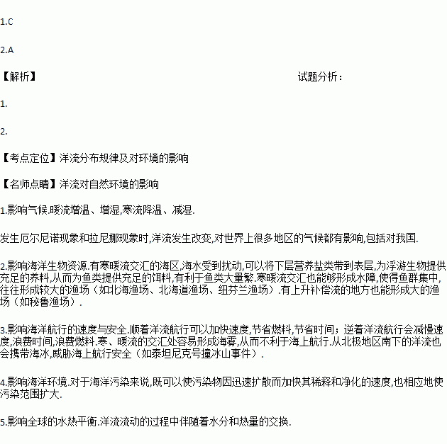 2.对相邻陆地环境而言,洋流G的影响是( )