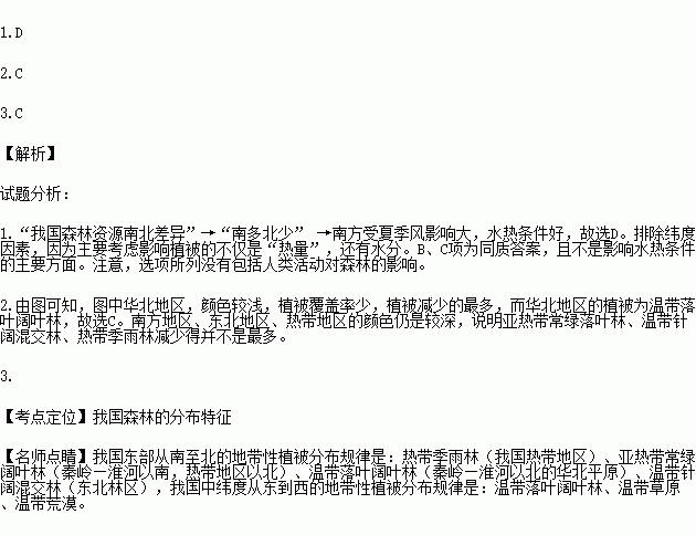 1.影响我国森林资源南北差异的主要因素是