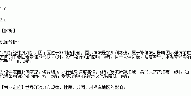 1.影响图示洋流前进方向的主要因素是