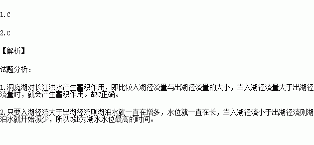 1.这段时间洞庭湖对长江洪水产生蓄积作用的时段是