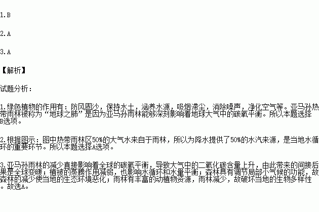 1.亚马孙热带雨林被称为“地球之肺”是因为