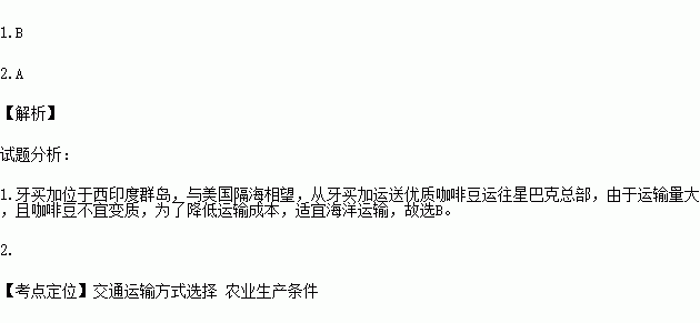 1.美国咖啡连锁店的咖啡豆来自于牙买加,运到美国采用最适宜的运输方式是( )