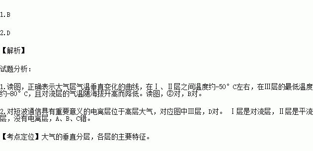 1.图中正确表示大气层气温垂直变化的曲线是