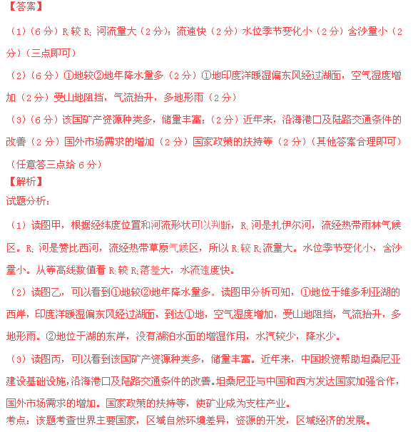 (3)简析矿业成为坦桑尼亚国民经济和出口的支柱产业的原因。(6分)