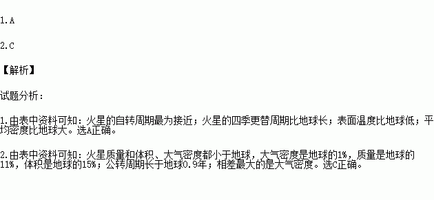 1.火星与地球地理环境(现象)最接近的是