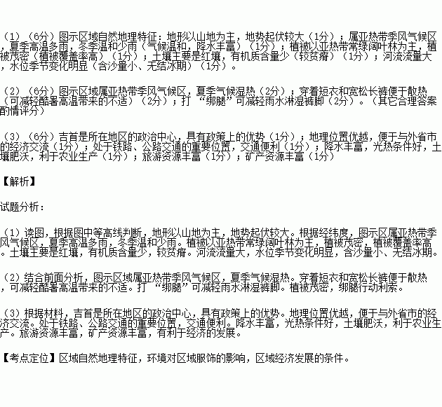 (3)根据图文资料,分析吉首市发展经济的优势条件。(6分)
