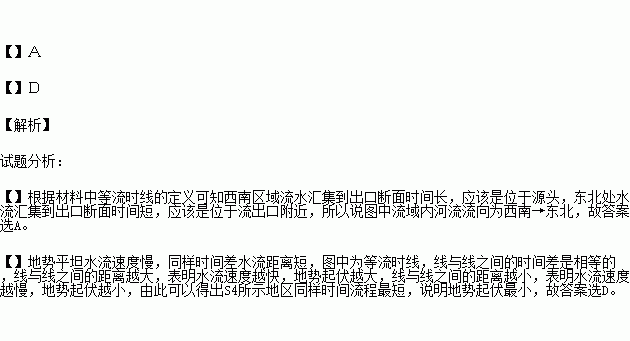 流域上各点的雨量汇流速度有快有慢,汇流时间也有长有短。等流时线是流域内汇流到出口断面时间相等的各点连接成的线。读图回答下列问题。