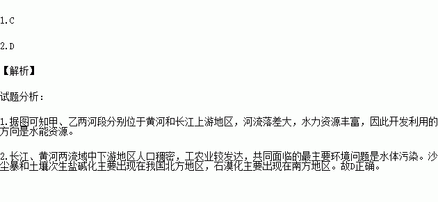 2.长江、黄河两流域中下游地区共同面临的最主要环境问题是( )