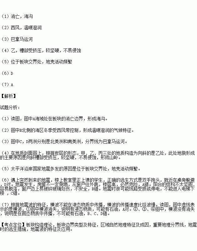 £¨1£©Í¼ÖÐAº£Óò´¦ÔÚ°å¿éµÄ ±ß½ç£¨Ìî¡°Éú³¤¡±»ò¡°ÏûÍö¡±£©£¬ÐÎ³É £¨µØÐÎÃû³Æ£©