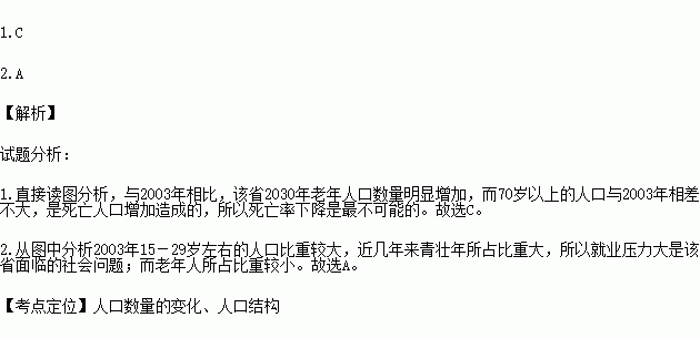 读我国某省2003年与2030年人口年龄结构比较图,完成下列问题。