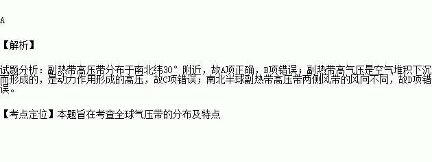有关副热带高压带的说法正确的是( )