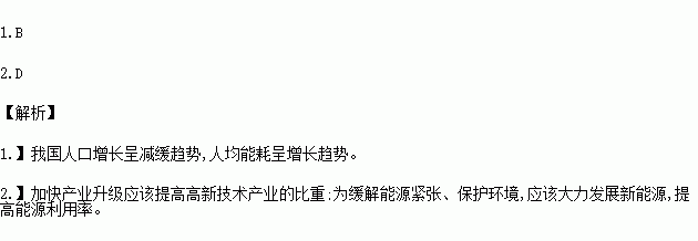 ①加快发展太阳能、风能等新能源 ②加快产业升级,提高重化工业比重 ③结合国情,增加煤炭使用量 ④节约能源,提高能源利用率