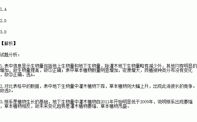 1.实验期间植被变化表现为 ( )