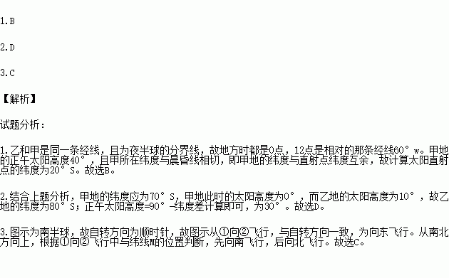 2.ÈôͼÖÐÒÒµã´ËʱµÄÌ«Ñô¸ß¶ÈÊÇ10¡ã£¬ÔòÒÒµãµÄµØÀíγ¶ÈºÍÕýÎçÌ«Ñô¸ß¶ÈΪ( )