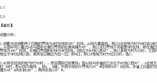 读全球经纬线展开示意图,图中AS虚线代表晨昏线,D点为晨昏线与赤道的交点,同时也是GF的中点;阴影与非阴影部分代表6日和7日两个不同的日期。据图回答下列问题。
