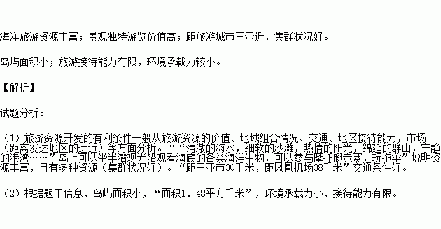 (1)根据材料分析蜈支洲岛旅游资源开发的有利条件是什么?