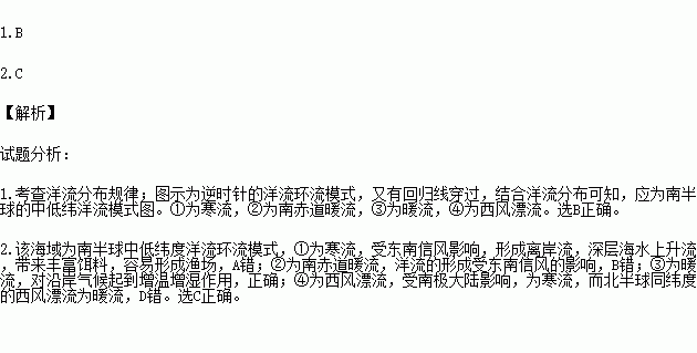 D.④处洋流与另一半球同纬度海区的洋流性质相同