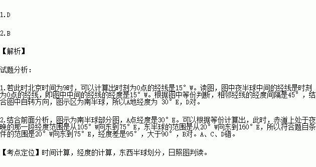 2.此时,赤道上东半球范围内处于夜晚的那一段经度差( )