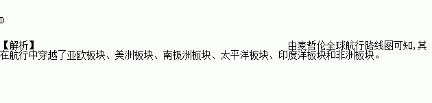 读麦哲伦环球航行路线图,麦哲伦船队在环球航行中共穿过几大板块?( )