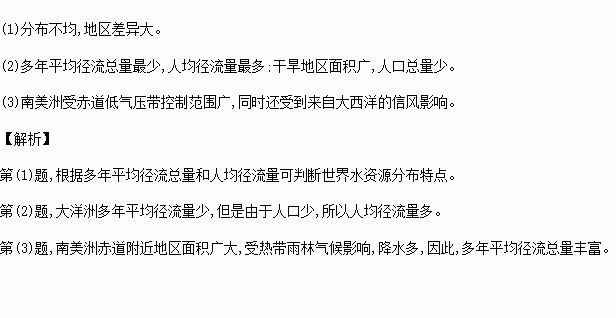 (2)说出大洋洲水资源数量特点,并分析原因。