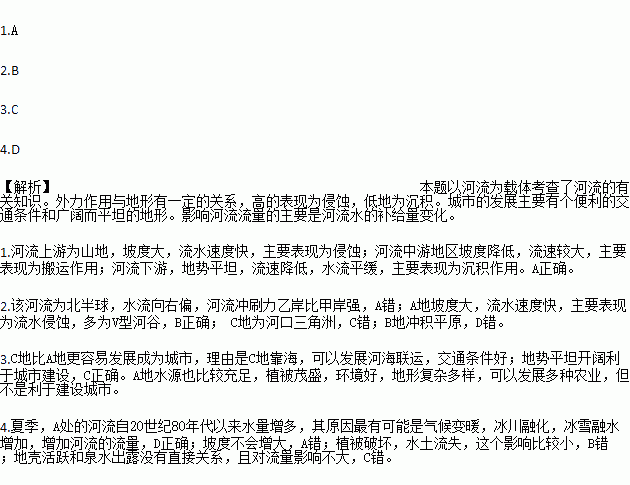 4.夏季,A处的河流自20世纪80年代以来水量增多,其原因最有可能是